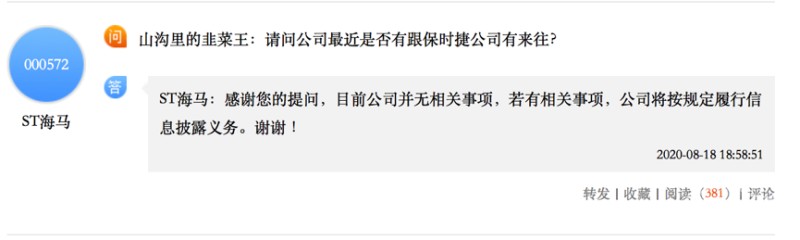 不过,很快保时捷中国方面率先作出回应称:“保时捷并没有国产的计划。”与此同时,海马汽车董秘办也回复网友提问表示:“目前公司并无相关事项。若有相关事项,公司将按规定履行信息披露义务。”